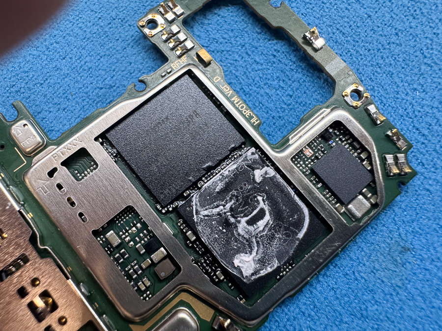 外したチップには古いはんだやアンダーフィルが残っているので、全てキレイに清掃します。