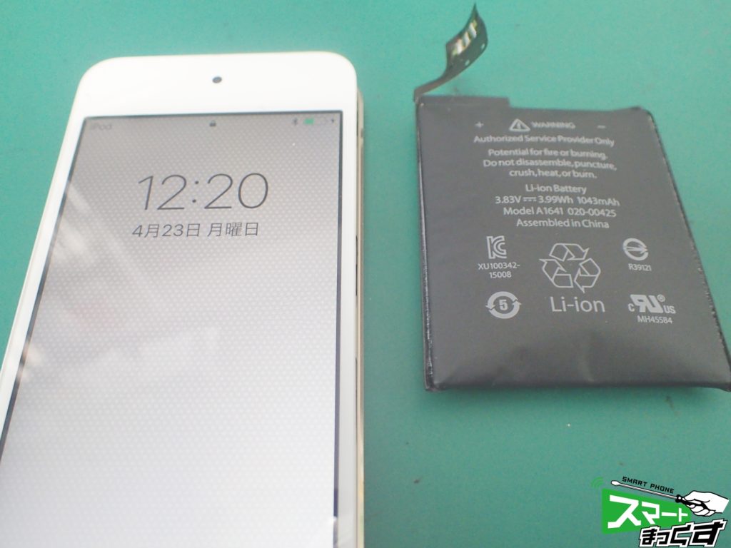 【自社PSE申請】iPodtouch 第6世代 バッテリー交換(膨張)60分で行います。