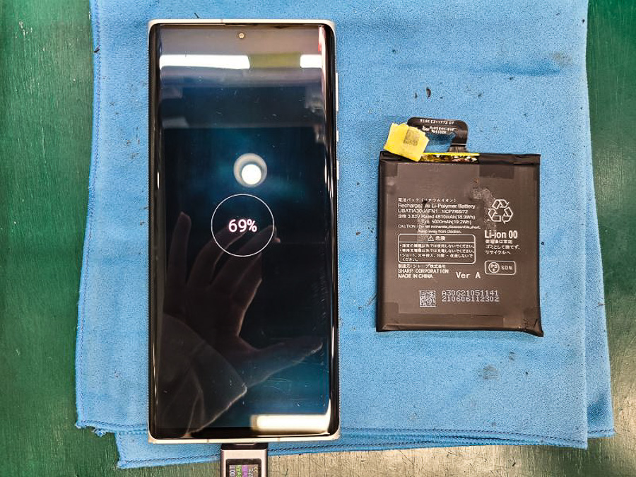 バッテリー交換後の充電チェックも重要なので、時間いっぱいまでテストを行い、背面パネルもしっかりと貼り付いていることを確認して無事ご返却となりました。