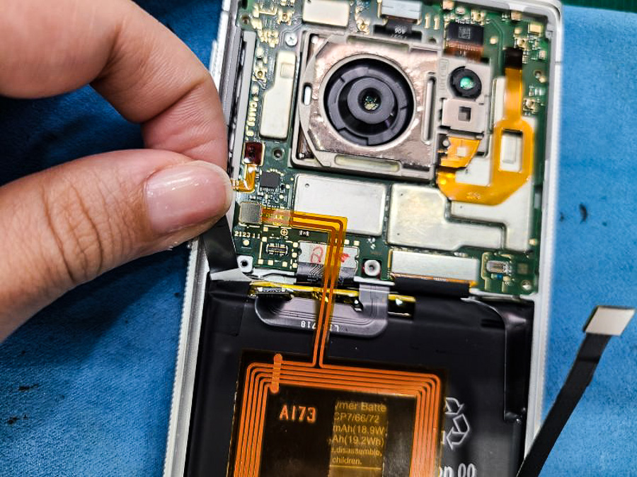 いくつかのコネクタにアクセスできるようになったので、バッテリーを含め外す必要のある箇所のコネクタを取り外して、バッテリーを剥がせる状態にします。