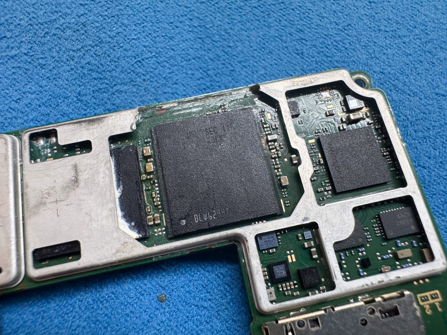 今回はCPUとRAMチップが重なって実装されている機種のため一枚ずつ丁寧に剥がす必要があります。