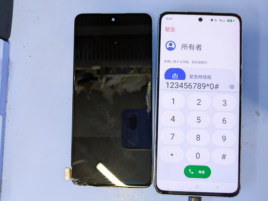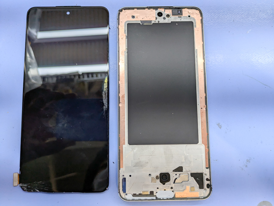今回のようにフレーム幅が狭く、接着剤で画面を固定する構造の機種は、修理後に画面浮きなどのトラブルが起こりやすい傾向があります。