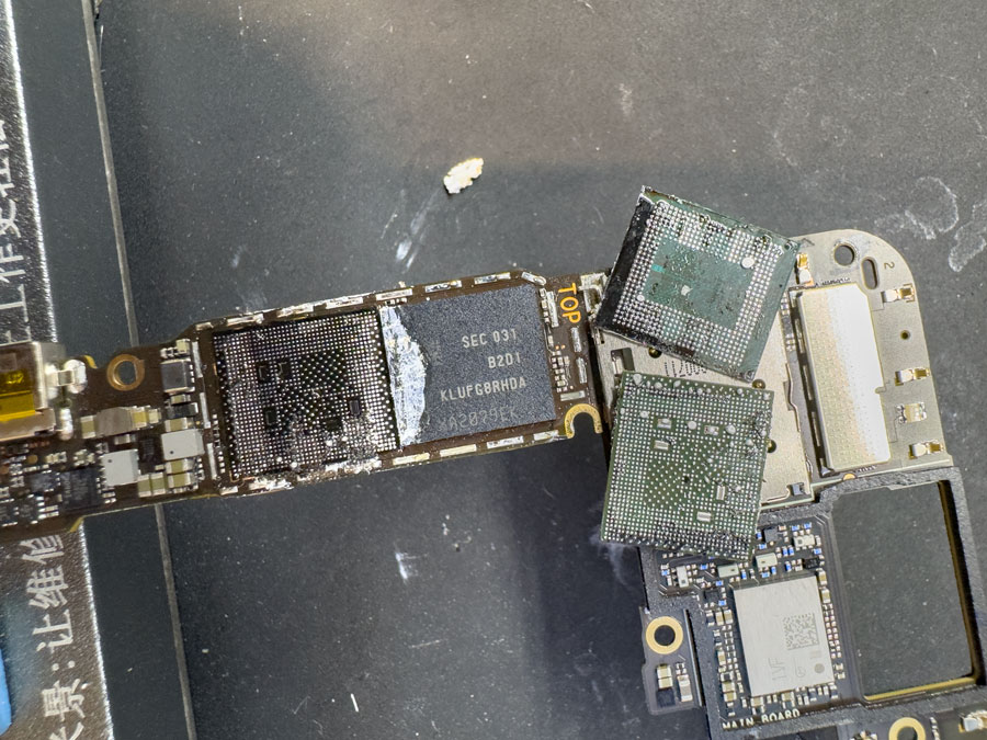 一部にアンダーフィル(接着剤)が使用されているため、熱を加えながらチップに負荷をかけないよう丁寧に剥がし取ります。