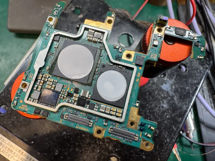 さらに、本体の曲がりがメイン基板のそばだったことを考え、検査の過程で、この基板の一部を指で軽く押さえつけるように圧力をかけると、正常に動作することが判明しました。
